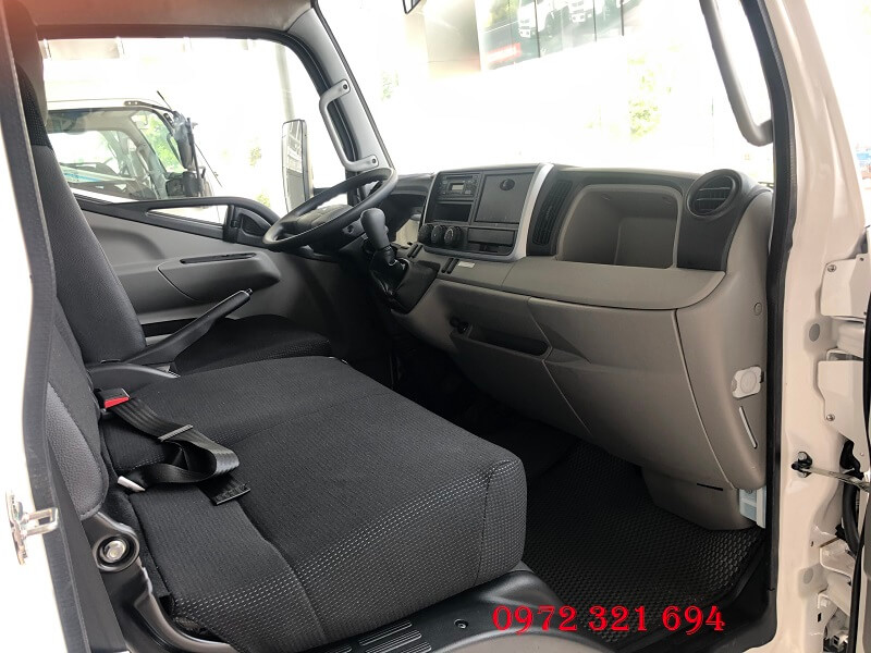 Cabin xe Canter TF4.9 thiết kế khoa học. Ghế bọc nỉ cao cấp, trần xe bằng vật liệu cách nhiệt giảm nhiệt độ cabin.